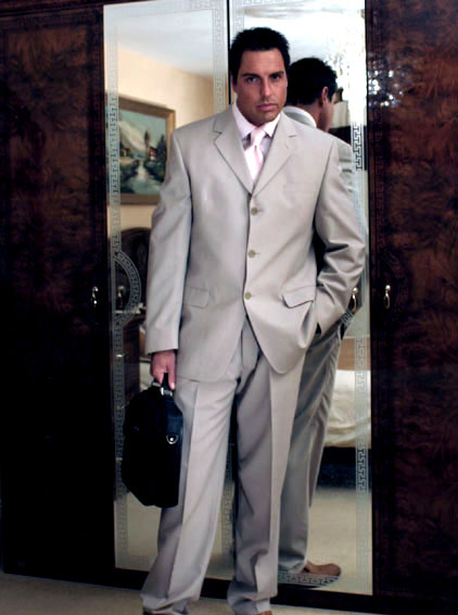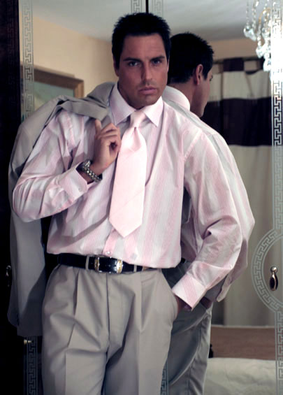 Hunky Marcello takes off his suit and plays with his huge cock