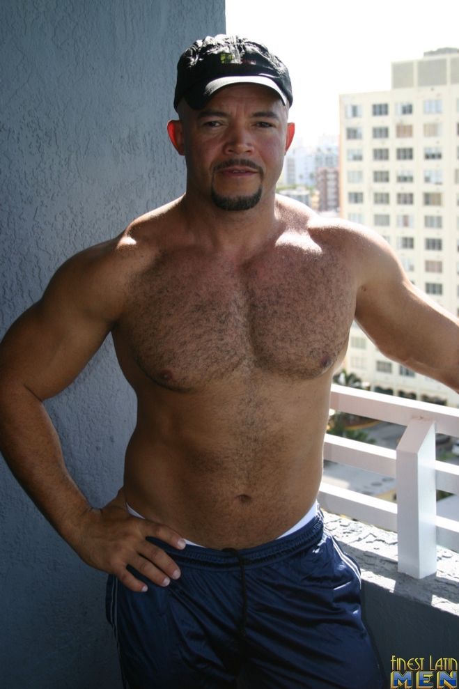 Big latin hunk shows his haity muscled chest